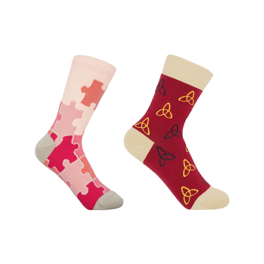 Jigsaw Pink And Tri Red Women's Socks Bundle