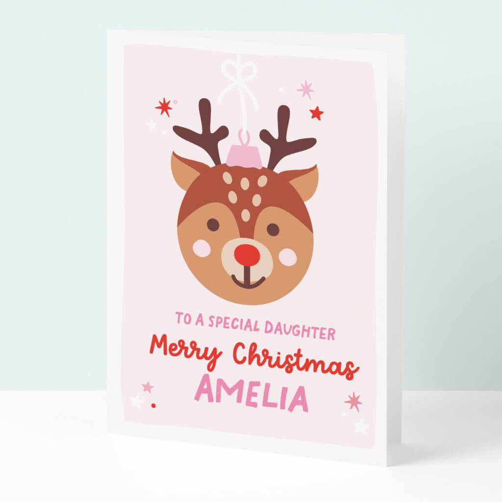 Personalised Reindeer Christmas Card For Daughter