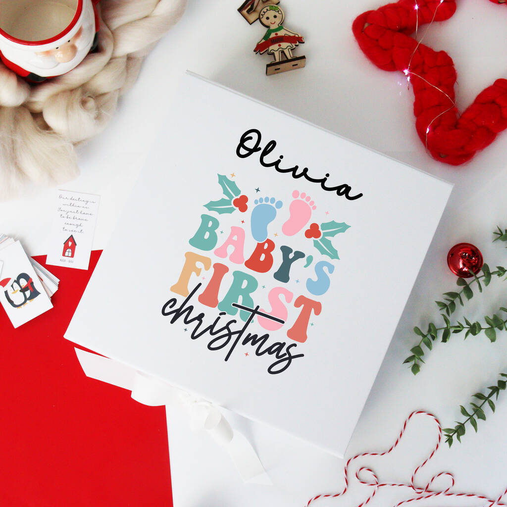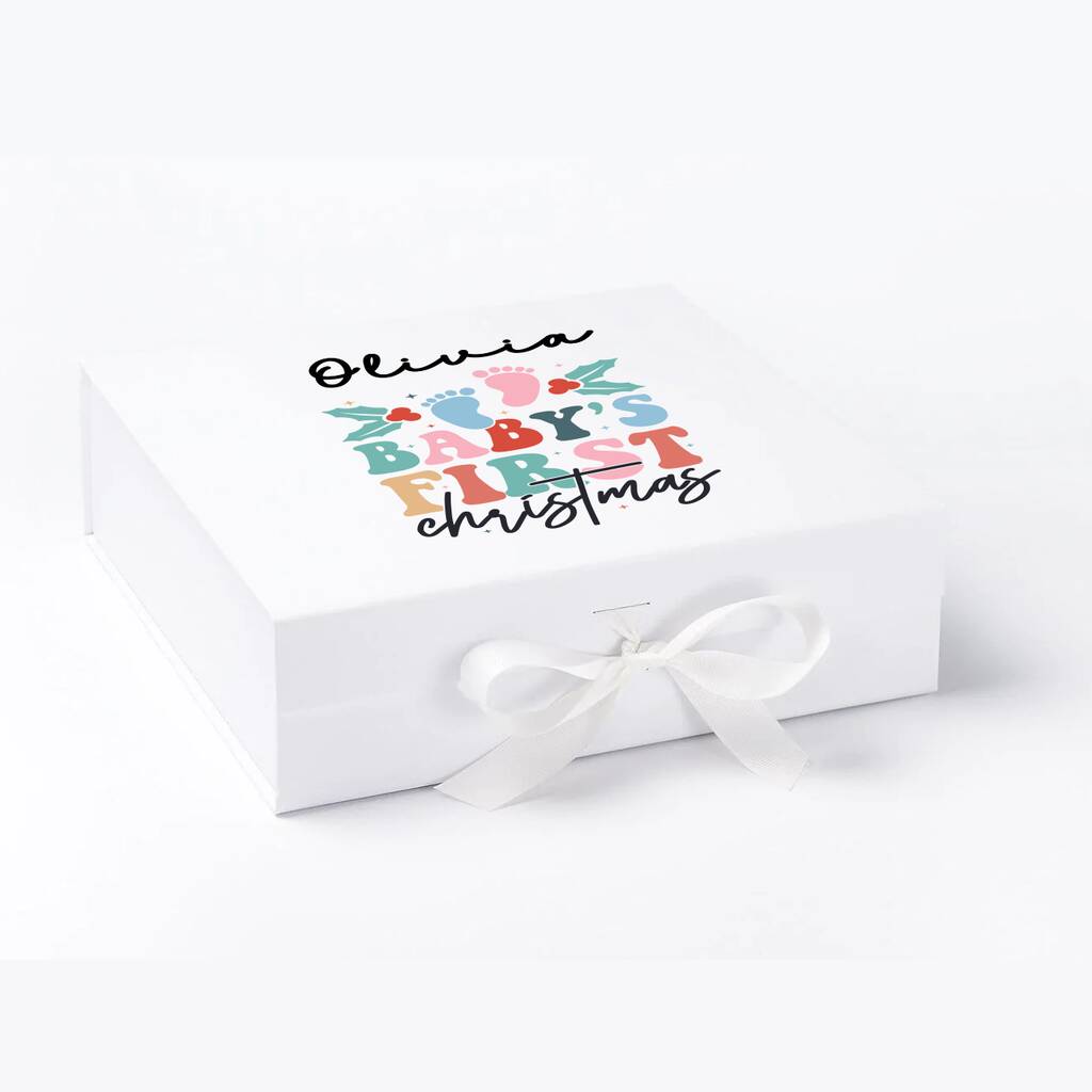 * Printed white gloss Christmas Eve box for baby’s first Christmas