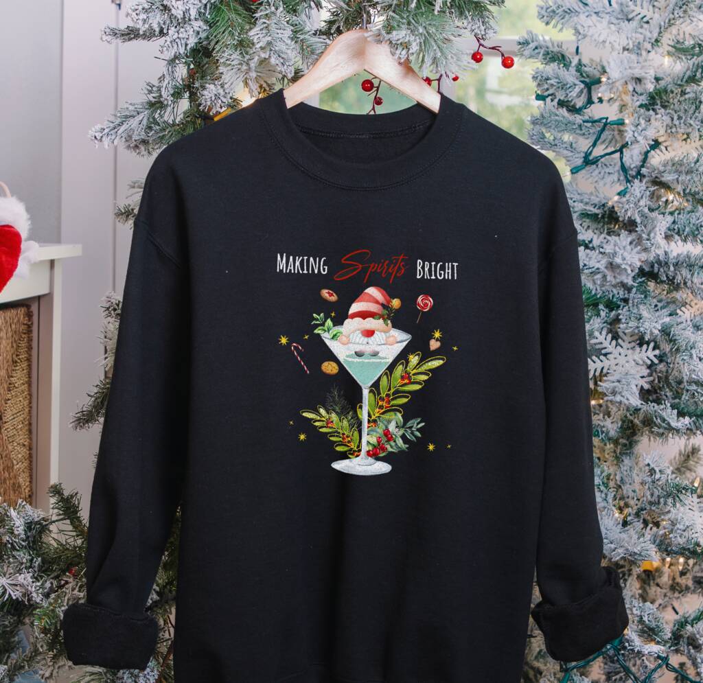 Making Spirits Bright Black Christmas Jumper With Festive Cocktail Design