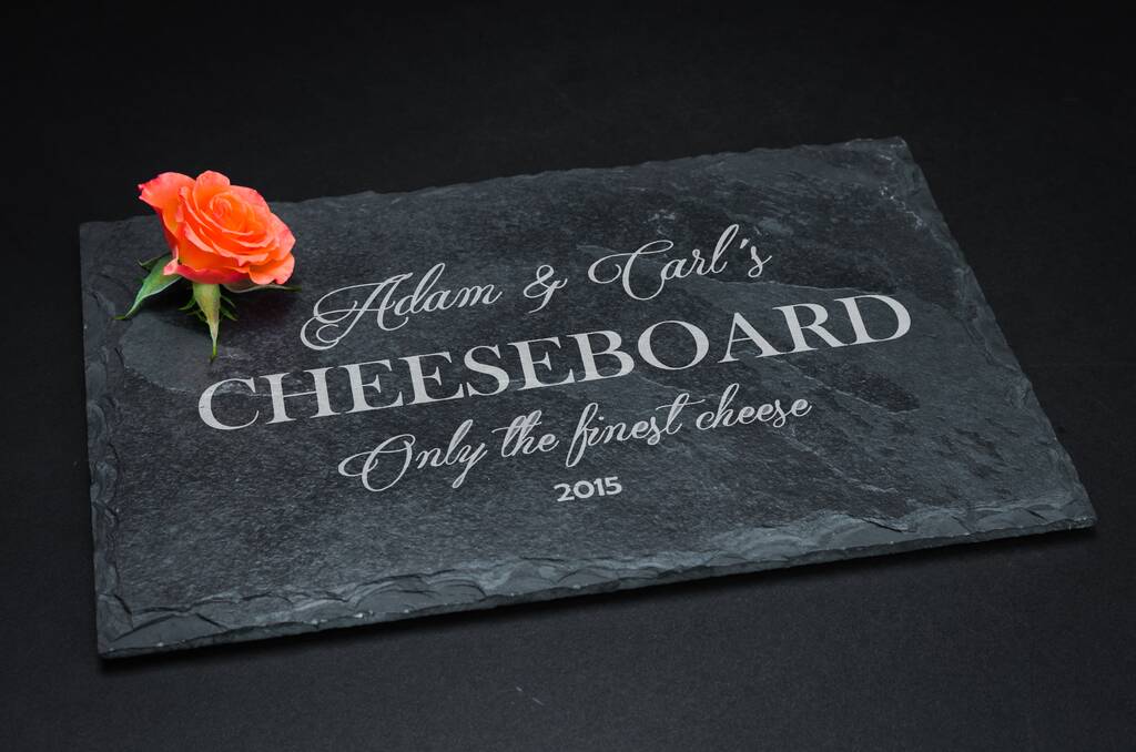 The natural beauty of slate shines through in this personalised cheeseboard, with its rich, dark tones and unique texture. Each cheeseboard is carefully engraved with your chosen personalisation, adding a touch of elegance and making it a truly unique piece.