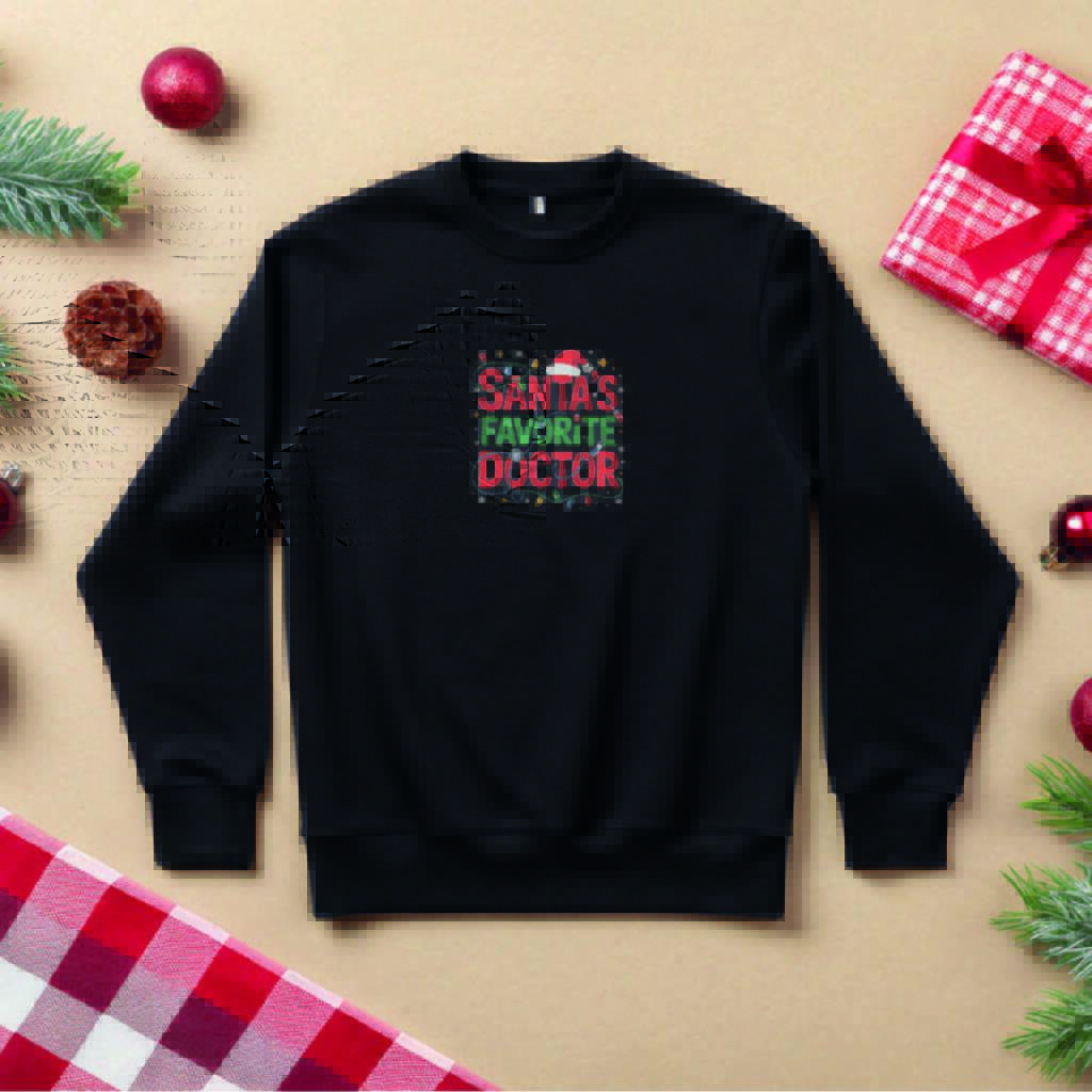 Santa’s Favourite Doctor Christmas Jumper – Unisex Black Festive Sweatshirt