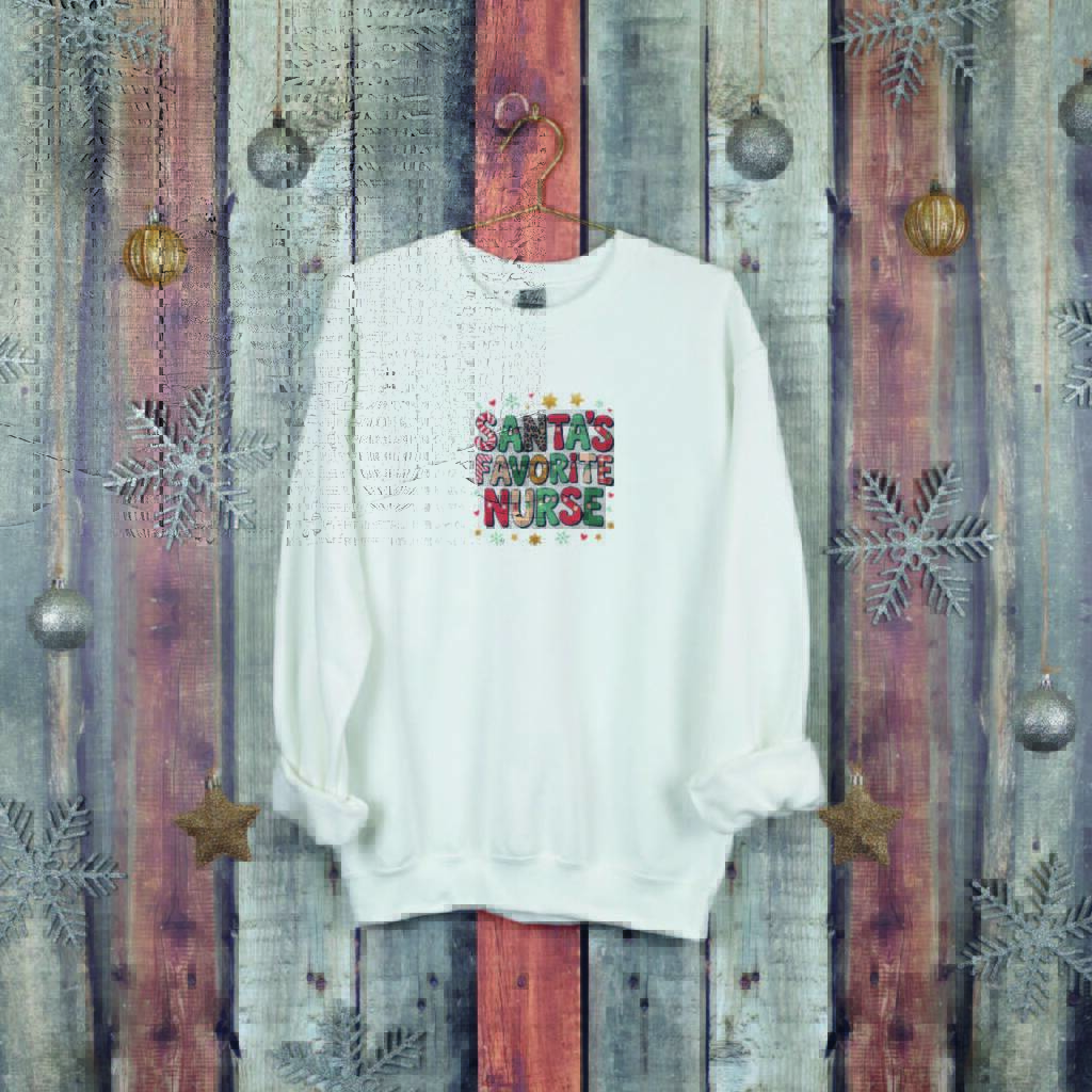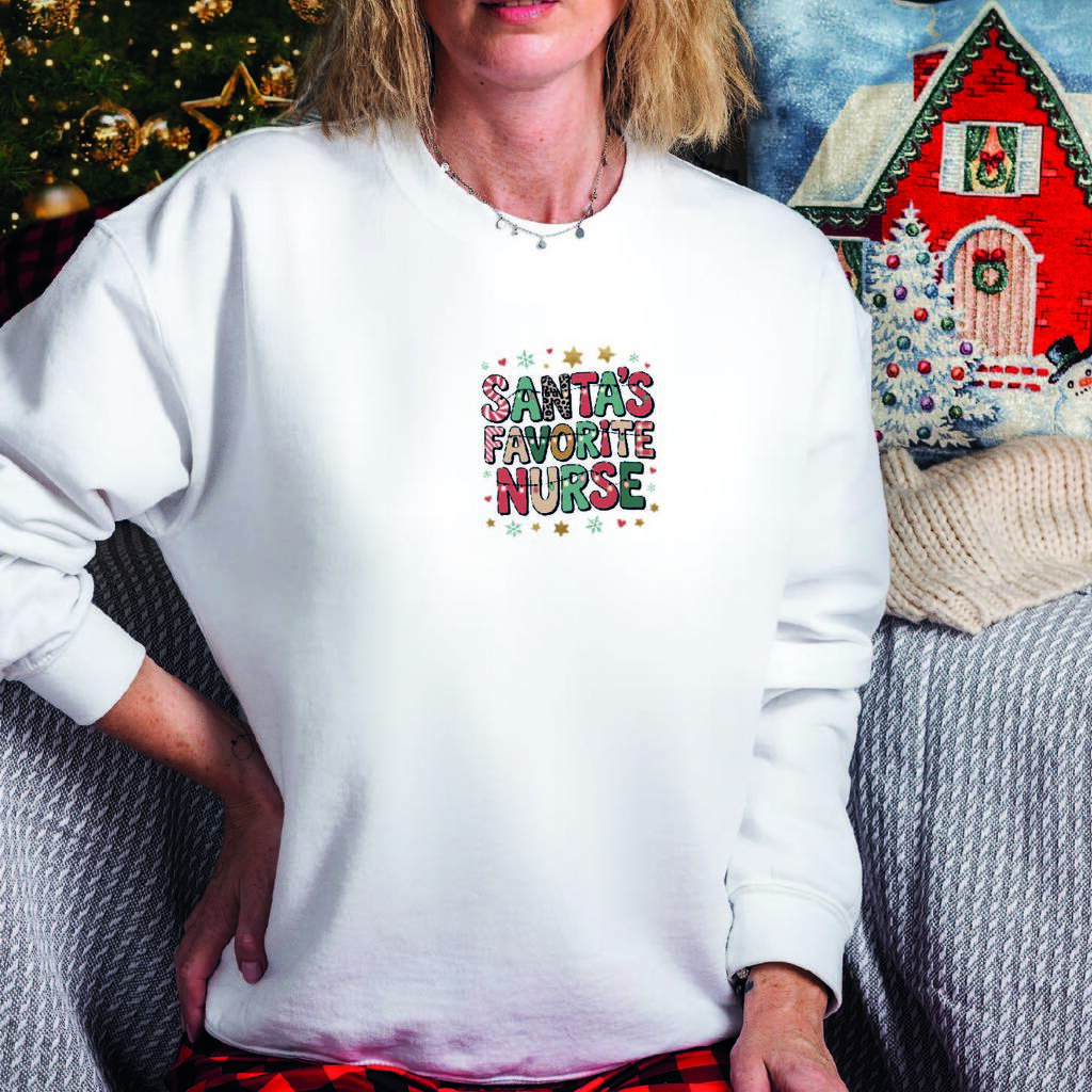 Santa’s Favourite Nurse Christmas Jumper – Unisex White Festive Sweatshirt