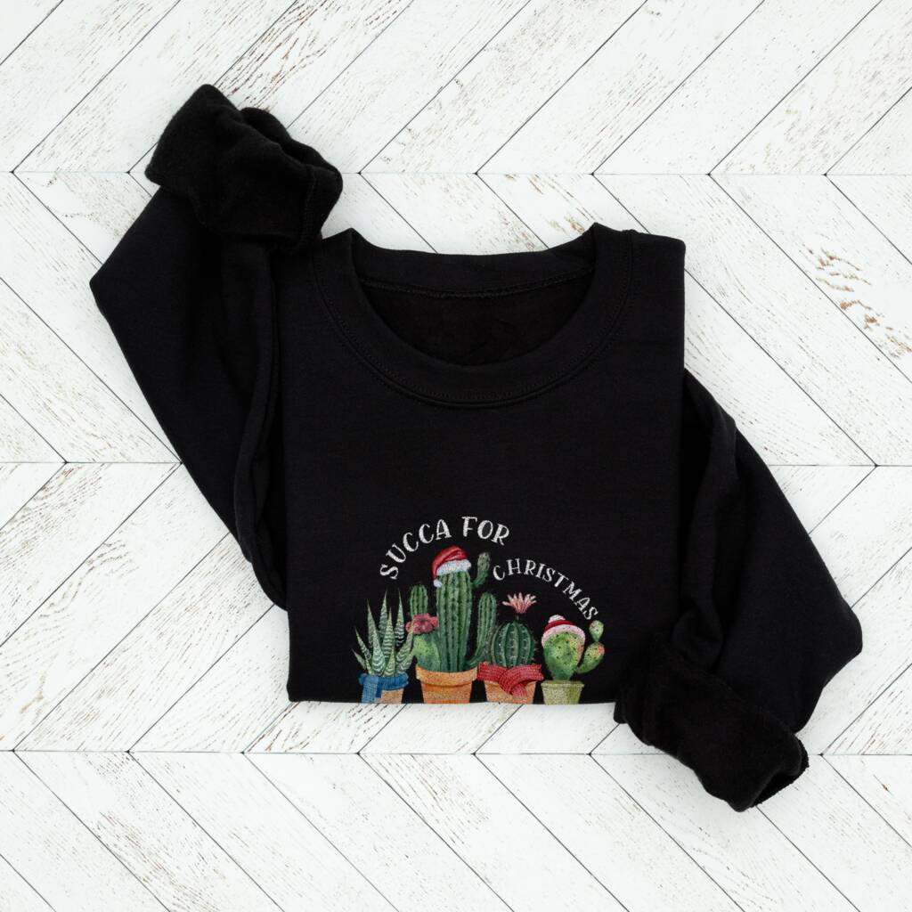 Black Christmas Jumper With ‘Succa For Christmas’ Succulent Design
