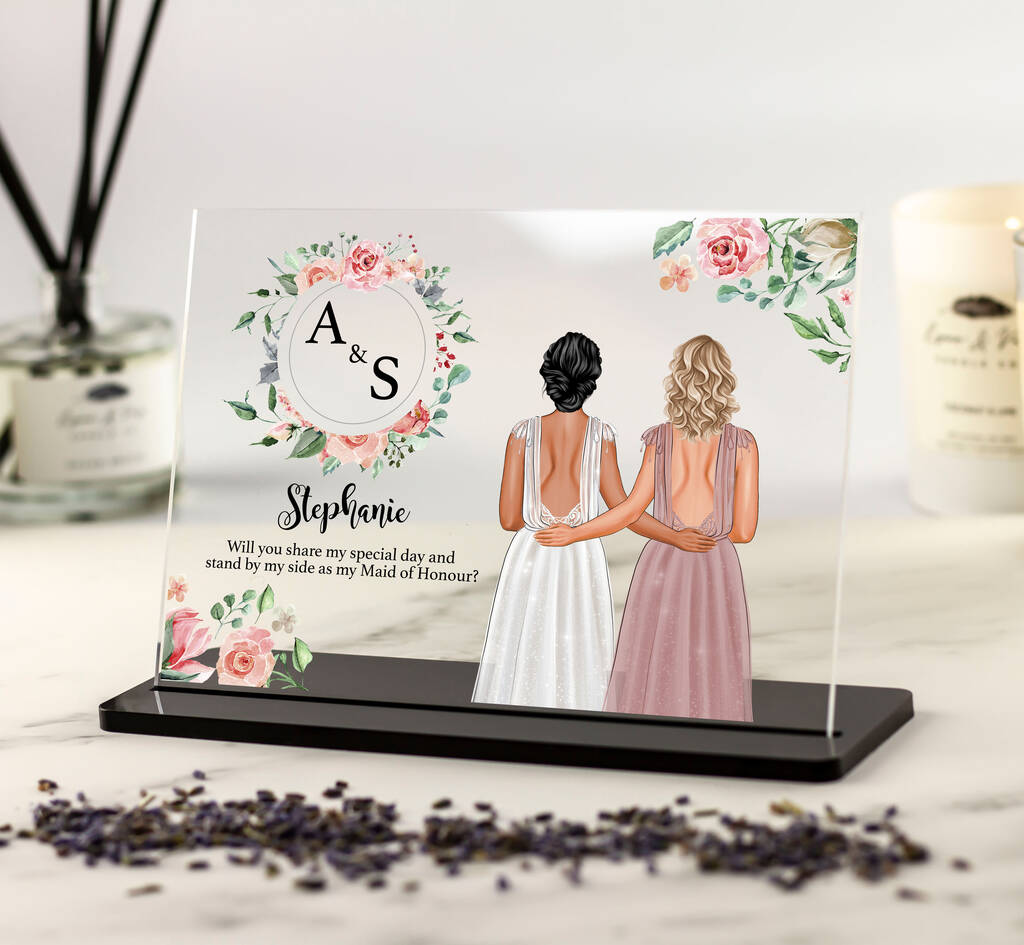 Personalised Floral Maid Of Honour Proposal Illustration Plaque