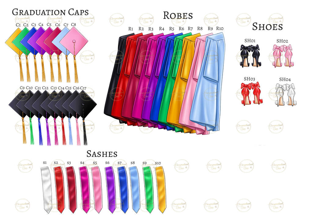 The graduate's portrait is depicted with intricate details, from their hair colour and skin tone to their shoes, gown, sash, and hat. This timeless design is a beautiful reminder of the graduate's hard work and dedication.