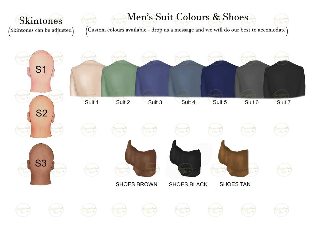 This acrylic plaque can be fully personalised to reflect your family. Select hairstyles, outfits, and skin tones to represent the bride, mum, and dad. Add names beneath the illustration, along with a date or personal message, for a unique touch.