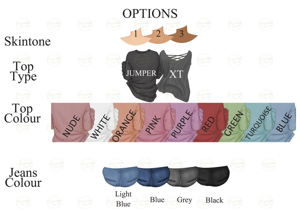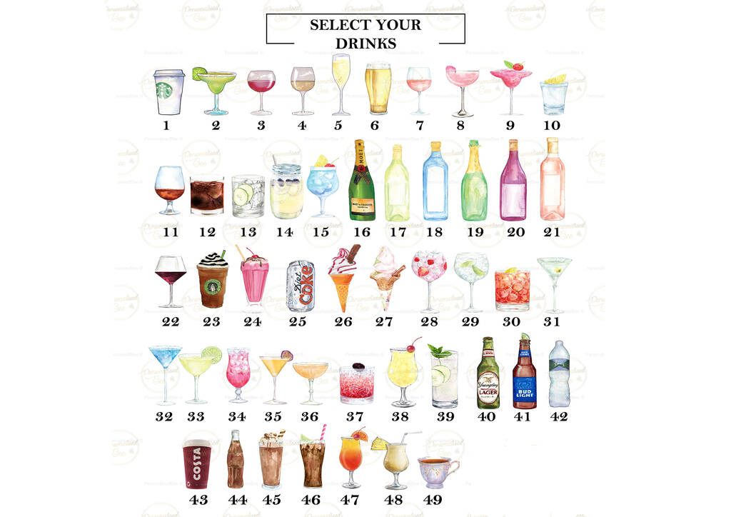 Each block is completely customisable, so you can make it truly personal. The illustration shows two sisters seated side by side, each holding a drink of your choice. Customers can select from a range of predesigned drink options such as coffee, tea, wine, or cocktails, adding a fun and authentic detail.