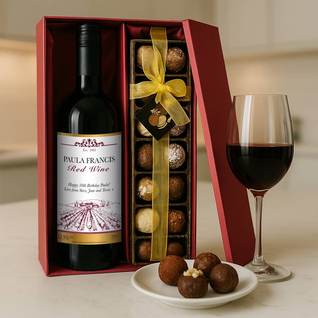 Personalised Red Wine And Truffles Gift Set With Any Name And Message