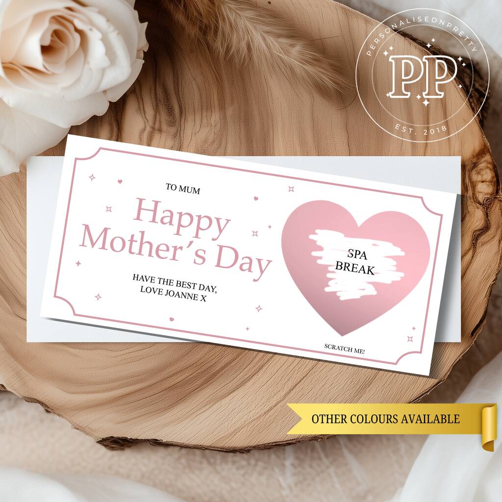 Personalised Mother's Day Voucher, Mother's Day Scratch Off Ticket