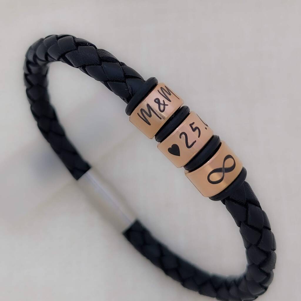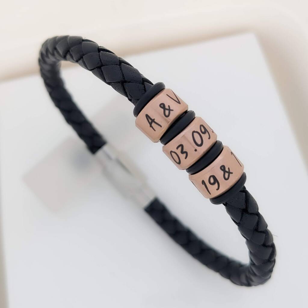 Personalised Braided Leather Bracelet With Engraved Rings – Christmas Gifts For Men