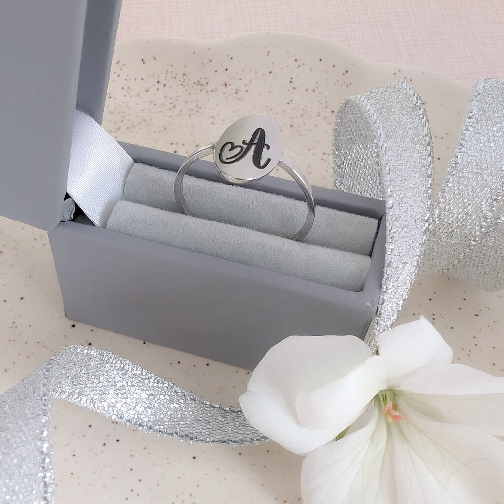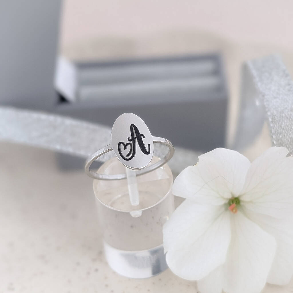 Silver Ring With Engraved Initial Letter
