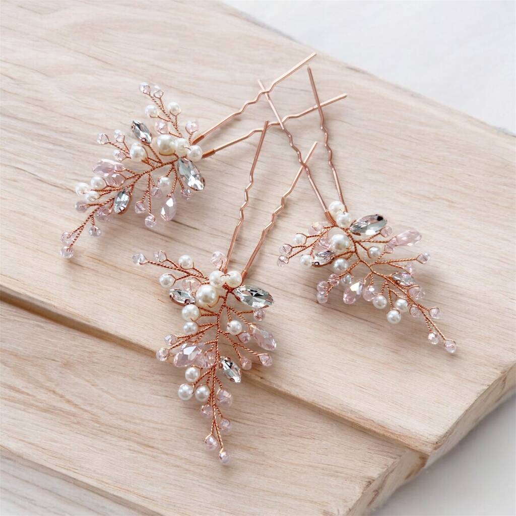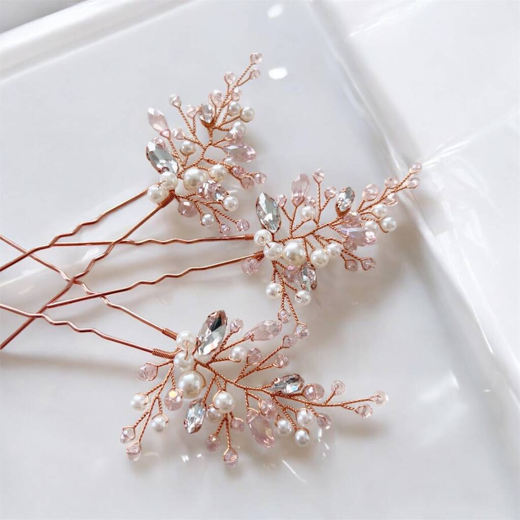 Elevate your hairstyle with this elegant rose gold hair pin set, a finishing touch you’ll treasure.