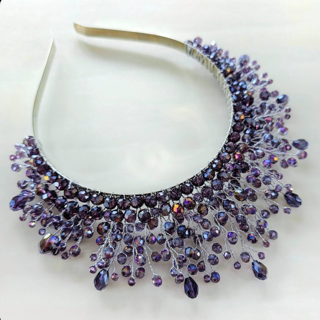 Hand-assembled with care, this crystal crown headpiece is ideal for special occasions, photoshoots, festivals, parties or as a unique decorative display. The deep purple crystals symbolise creativity, power and individuality, making this crown a meaningful gift for someone who loves to stand out from the crowd.