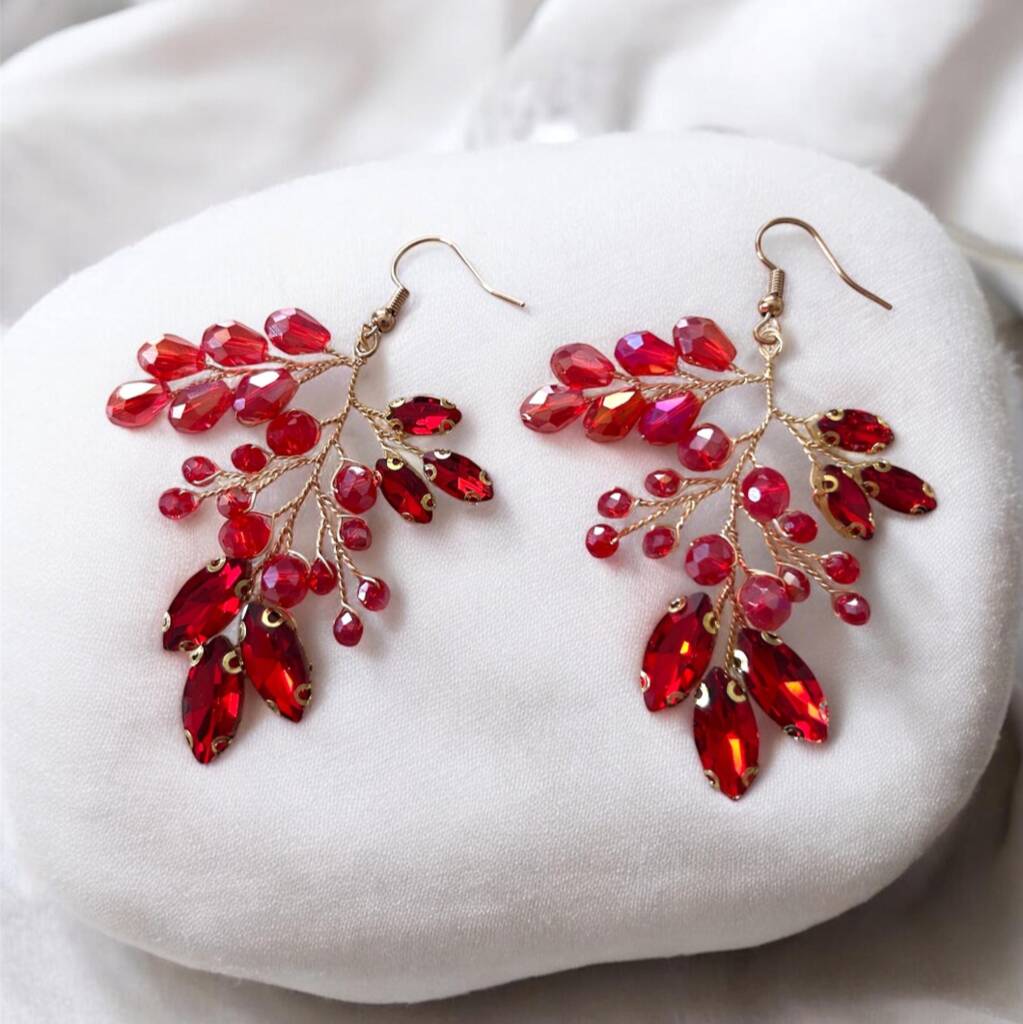 Ideal for those searching for red crystal earrings, statement jewellery, handmade earrings UK, or a bold gift for her, this pair delivers standout sparkle with handcrafted charm.