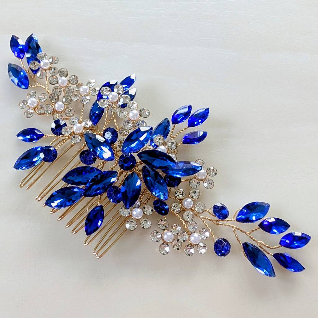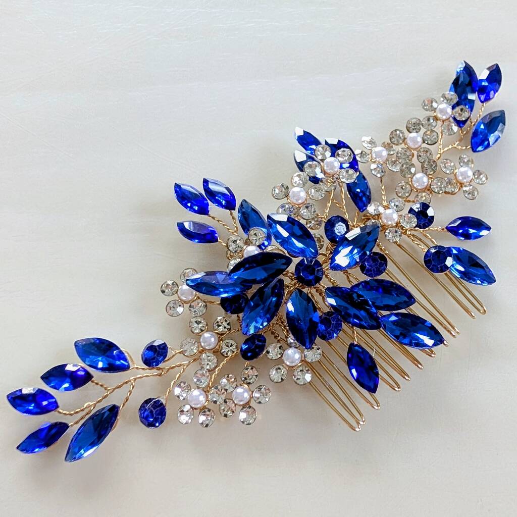 A beautiful choice for anyone who loves blue wedding accessories, pearl hair accessories, or crystal hair pieces, this comb brings timeless elegance to every celebration.