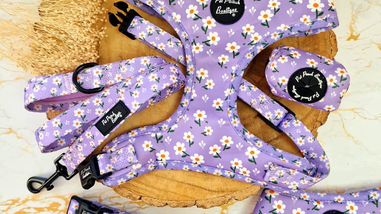 Along came the idea of Pet Pooch Boutique. Many of my items are handmade in house & boasts a large range of harnesses, collars, leads, bandanas & bow ties.