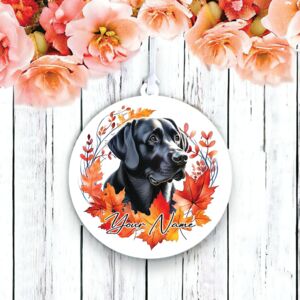 Personalised Dog Autumn Black Labrador Wreath Hanging Decoration