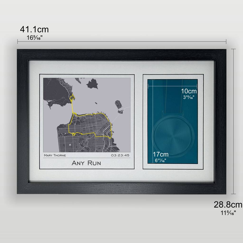 Brand new for all your COVID and lockdown runnnig needs. We can create a beautiful running gift for your virtual London Marathon, as long as your run has been recorded on any device and/or uploaded to Strava, MapMyRun, Garmin or any similar online running sites we can create a running route map for it. No matter where you have run your virtual London marathon this year we can still create a running route map with the ability to add a medal and or photo. All our virtual running gifts come framed as standard ready to display your medal and hang straight on your wall. It makes a truely unique gift for you lockdown run. All our running gifts are made to order in the UK.
