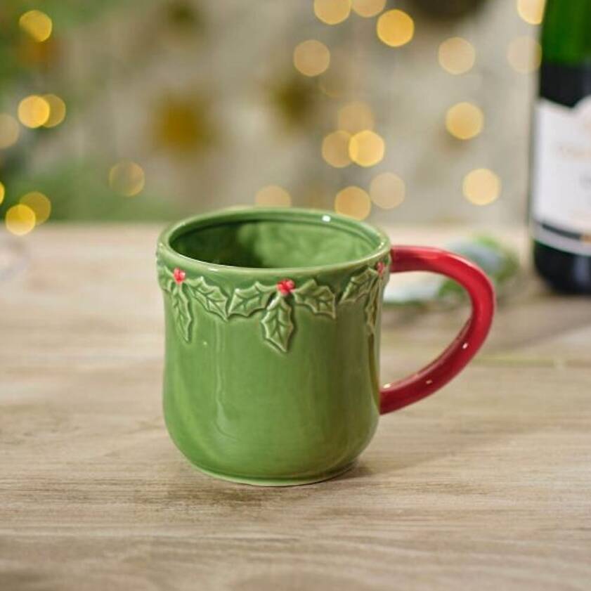 Ceramic Christmas Holly Embossed Mug