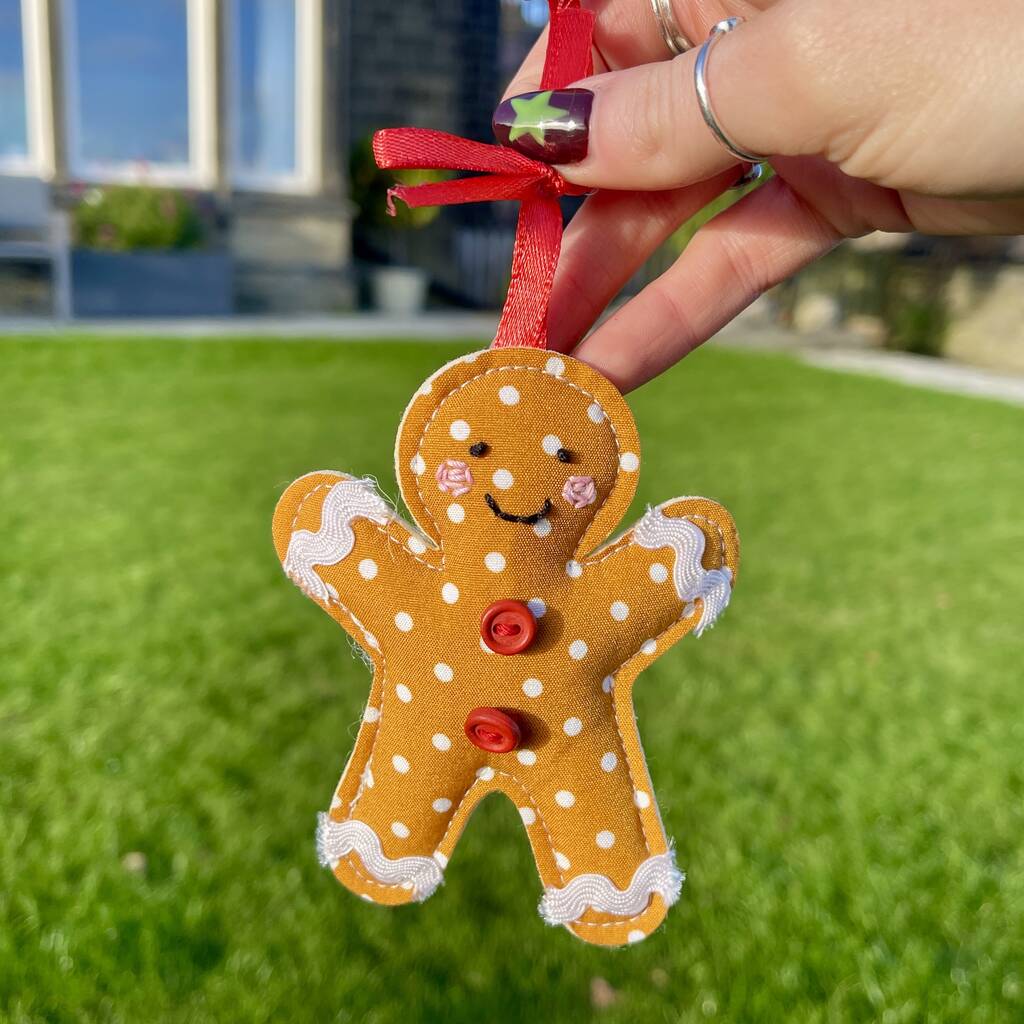 • Christmas Fabric Gingerbread Man Hanging Decoration, thumbnail 3 of 3