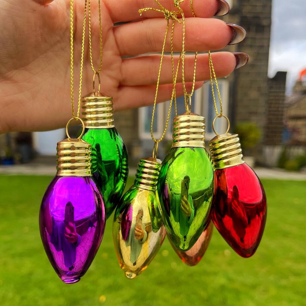 Christmas Light Bulb Style Glass Bauble Set