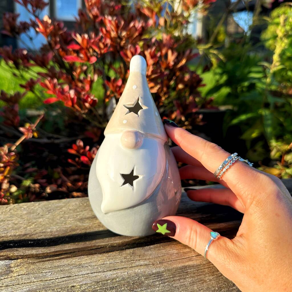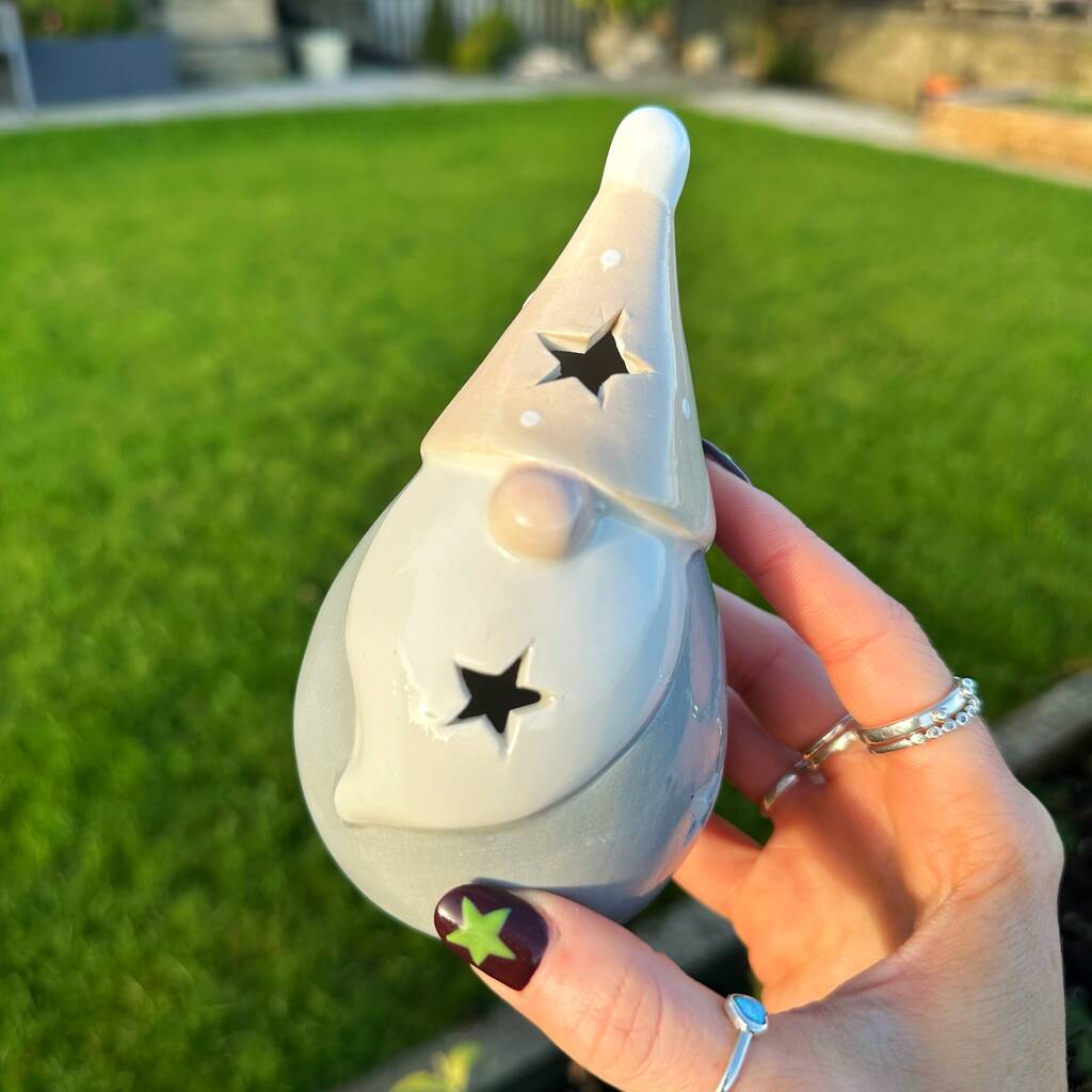 With a neutral polka-dot hat, a cute button nose and star-shaped cut-outs that glow warmly when lit, it brings instant cosiness to any room.