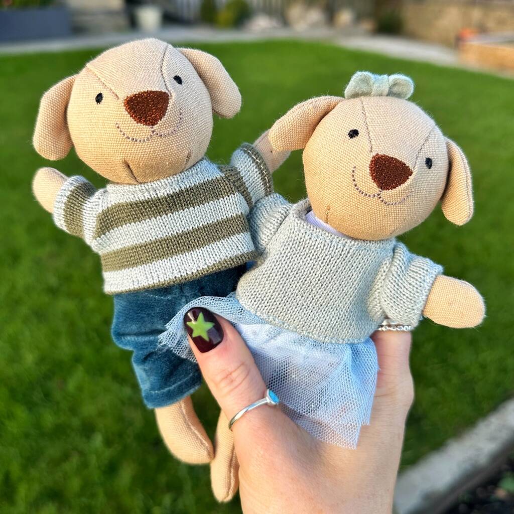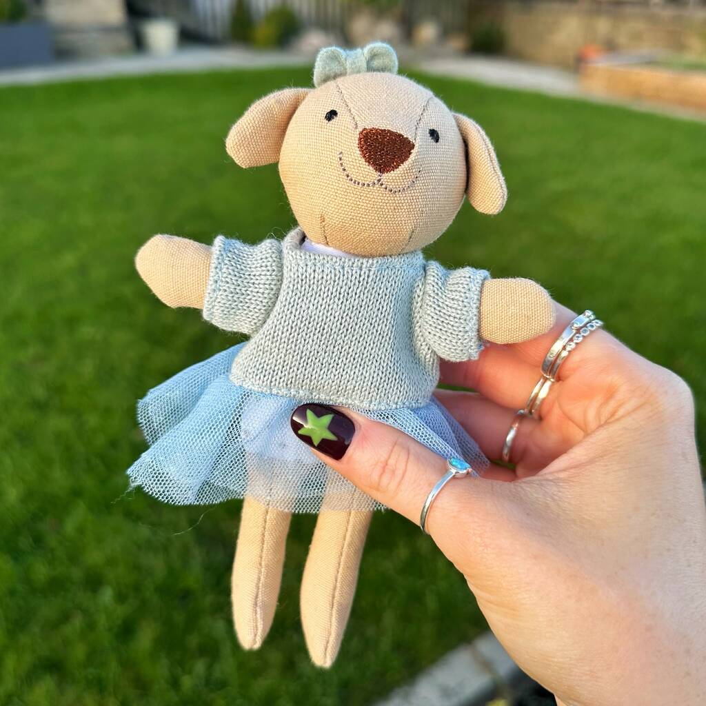 Tiny Linen Girl Dog With Blue Tutu