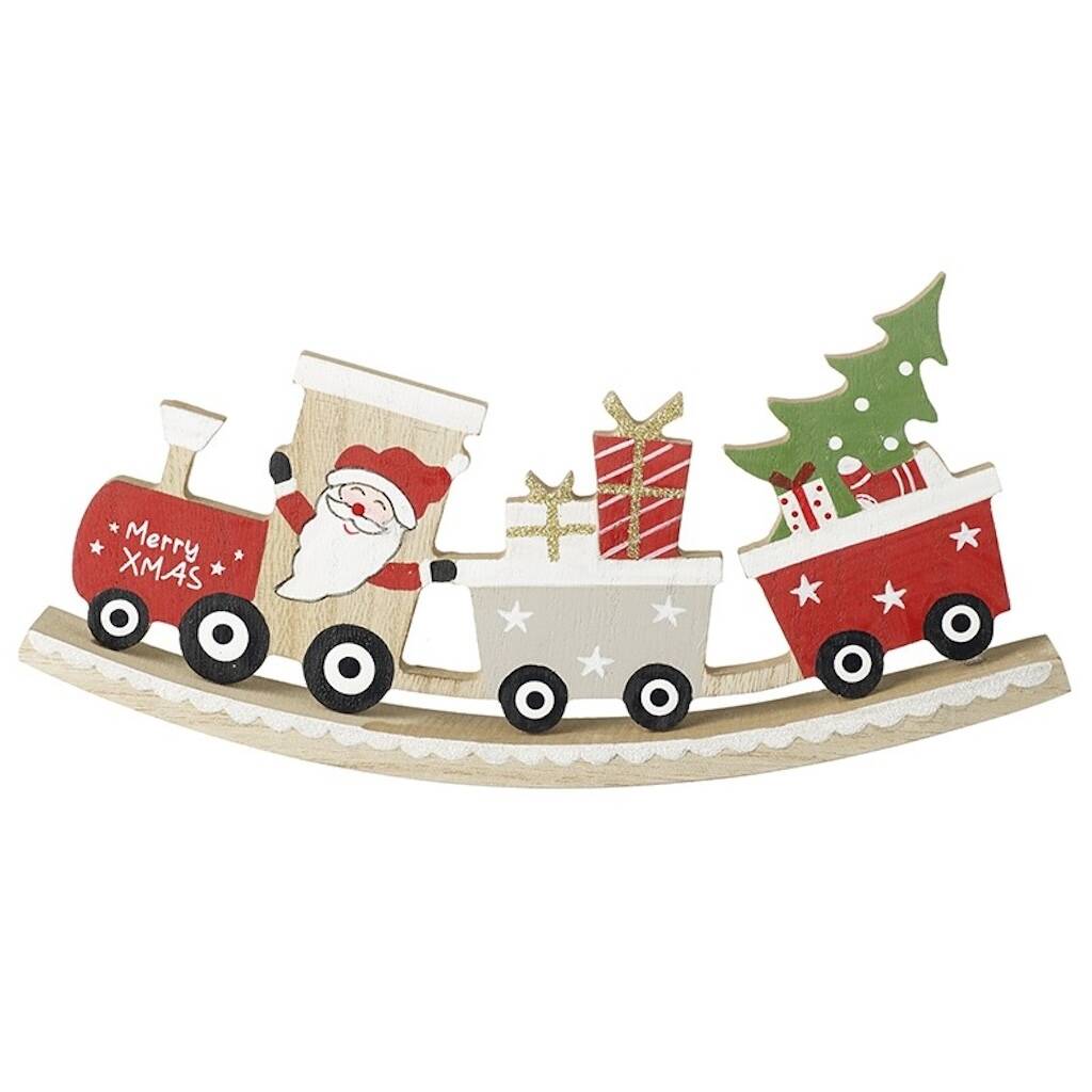 Bring festive charm to your home with this adorable wooden Santa train.