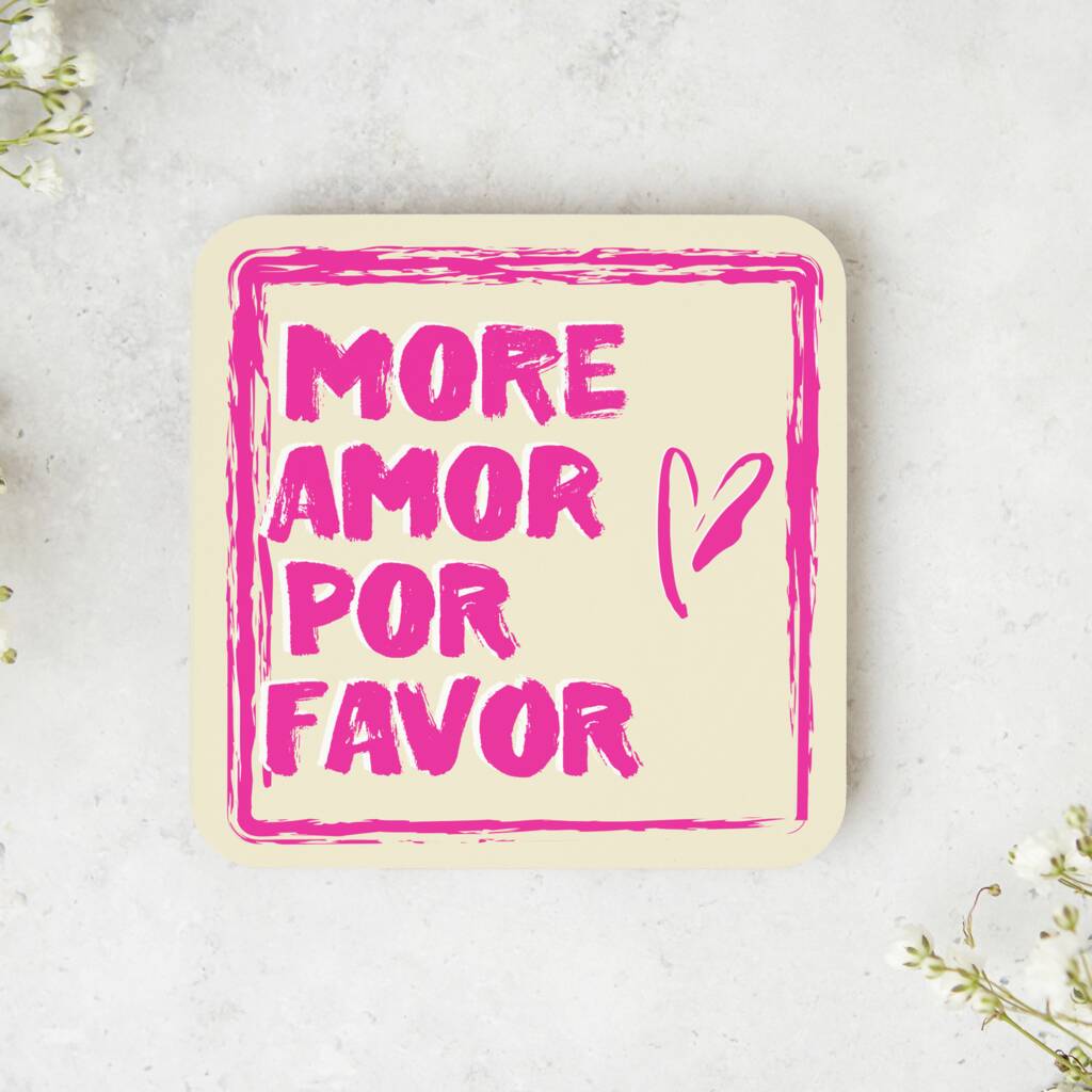 Bright Pink ‘More Amor Por Favor’ Romantic Coaster
