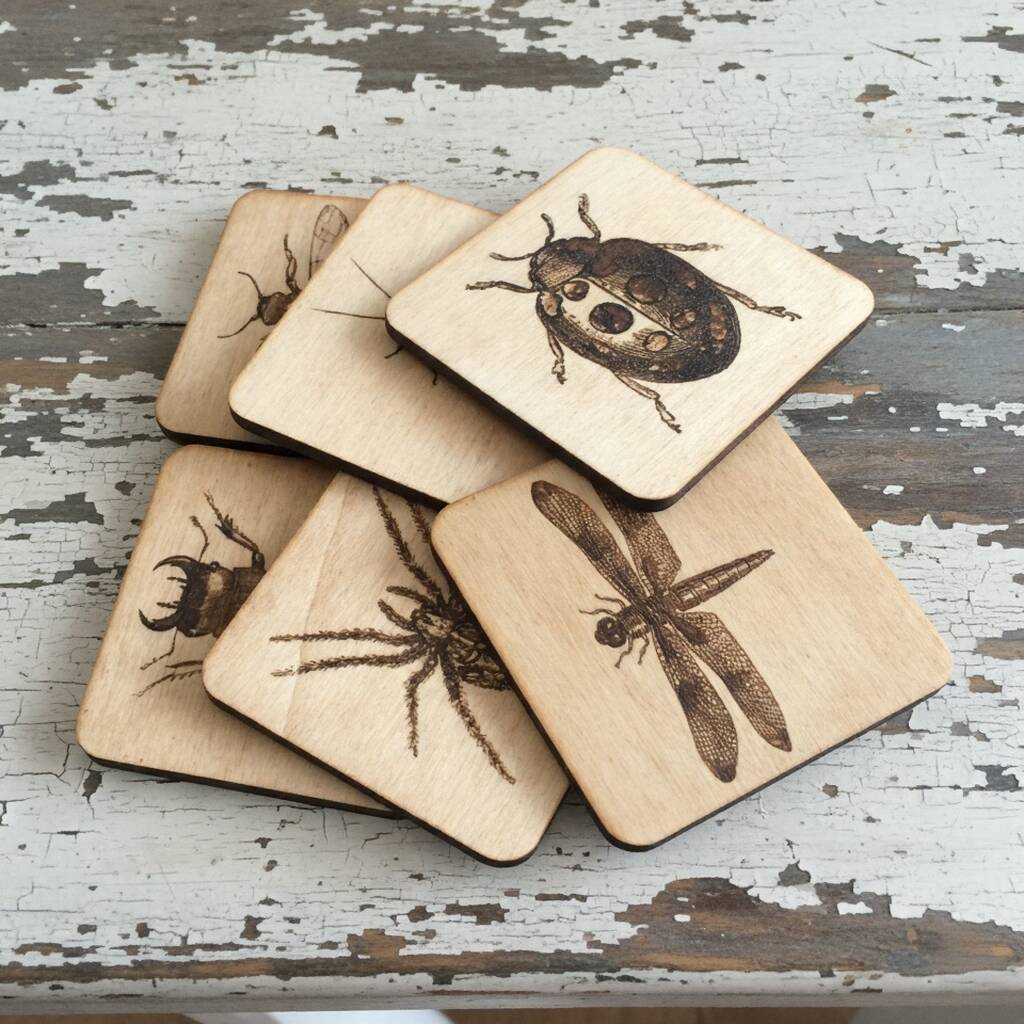 Bring the beauty of the natural world into your home with this enchanting set of six wooden coasters, each intricately engraved with a different creature. From butterflies to beetles, these coasters capture the diversity of wildlife. Packaged with care, they're ready to be presented as a thoughtful gift to any nature lover.