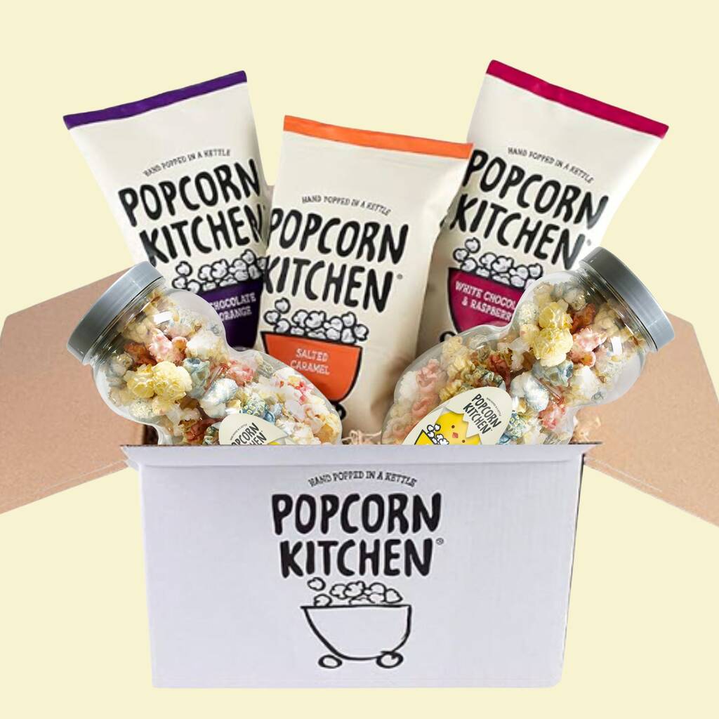 Salted Caramel Popcorn: Popped Corn, Sugar, Glucose Syrup, Butter (contains Milk), Double Cream (contains Milk), Salt, Rapeseed Oil, Emulsifier: Soya Lecithin, Raising Agent: Bicarbonate of Soda. Contains: Milk and Soya.