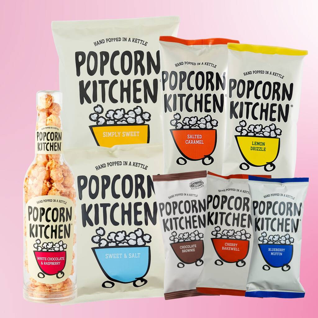 Blueberry Muffin: Popped Corn, Sugar, Glucose Syrup, Butter (contains Milk), Blueberries, Rapeseed Oil, Salt, Soya Lecithin, Bicarbonate of Soda, Natural Flavouring