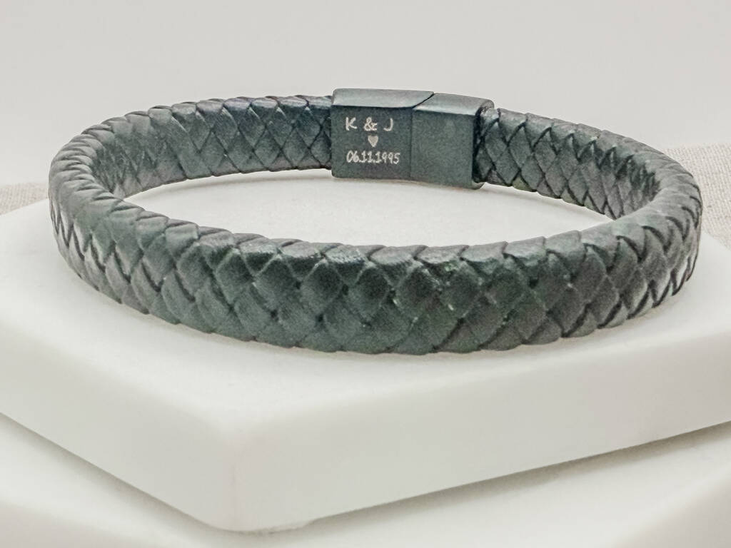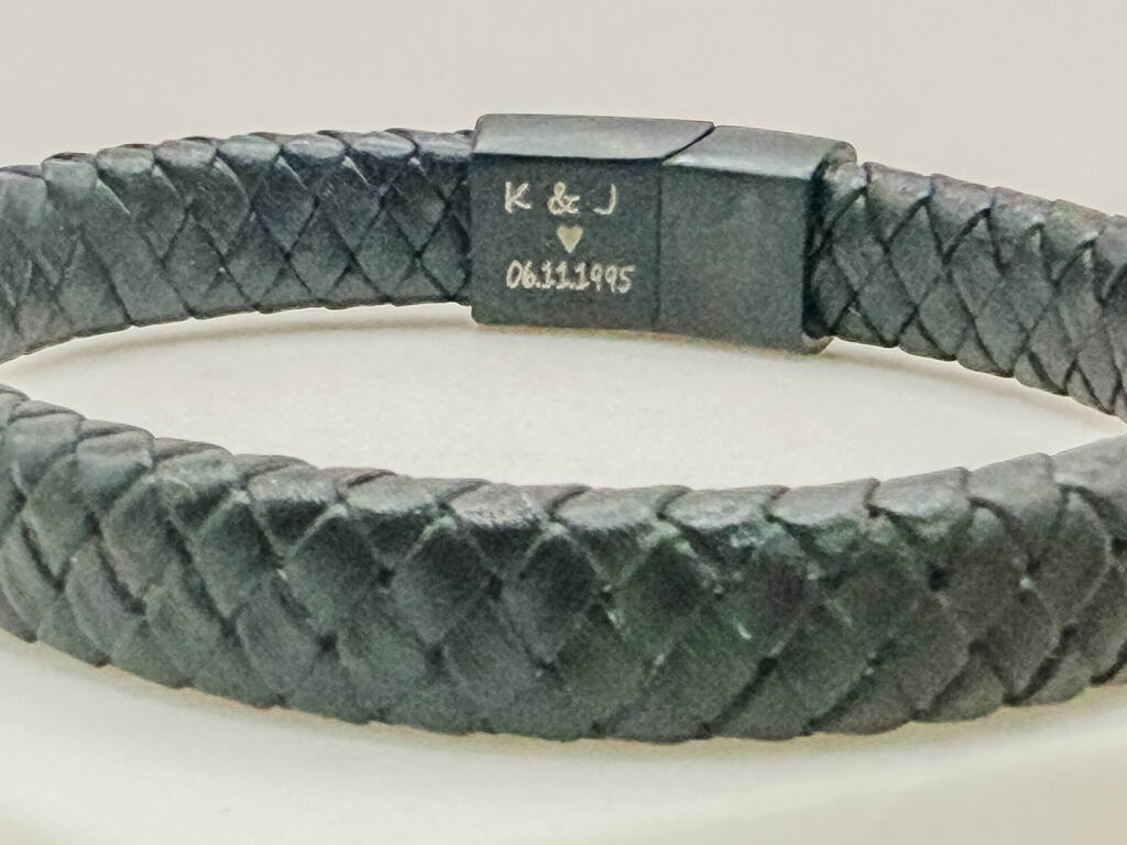Men's Personalised 'Secret Message’ Black Pu Leather Bracelet
