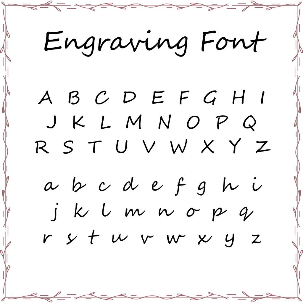 Please enter the name, initials or date exactly as you would like it engraved, along with the font of your choice. Your text will be engraved exactly as typed.