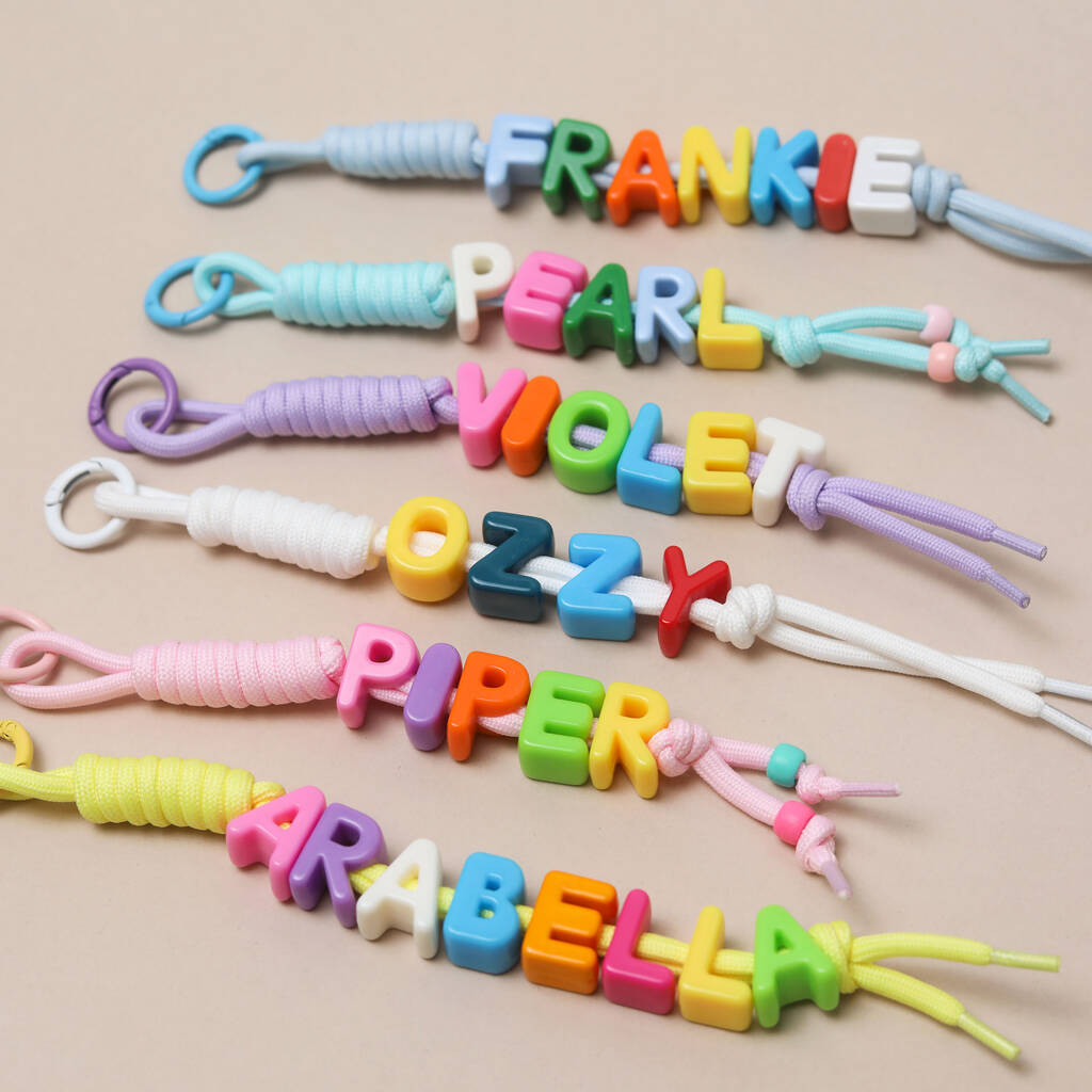 Personalised Beaded Name Bag Charm With Chunky Rope