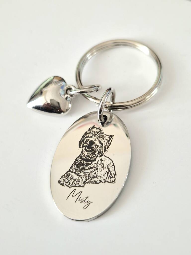 Personalised Oval Photo Or Print Keyring With Heart Charm