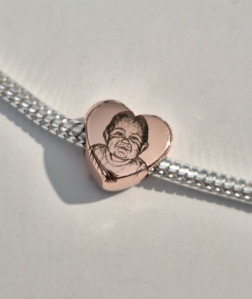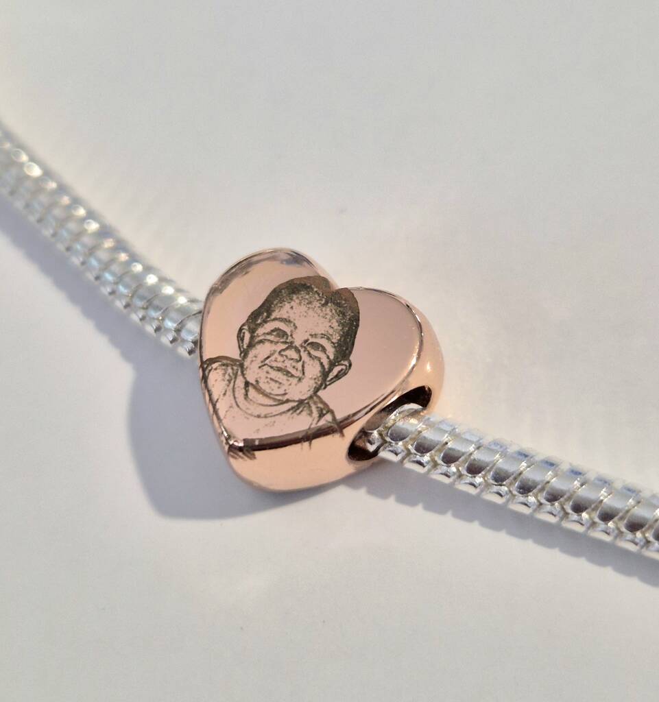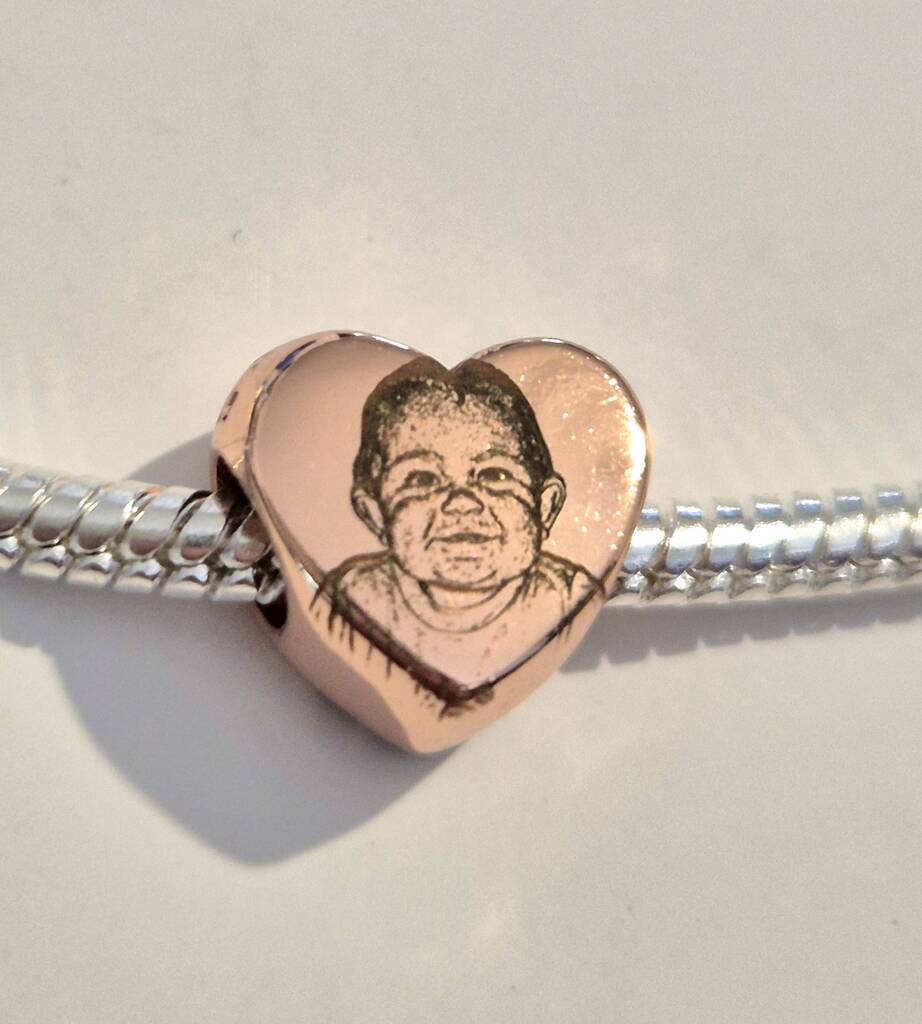 Personalised Rose Gold Pandora Style Charm – Photo Engraved With Text