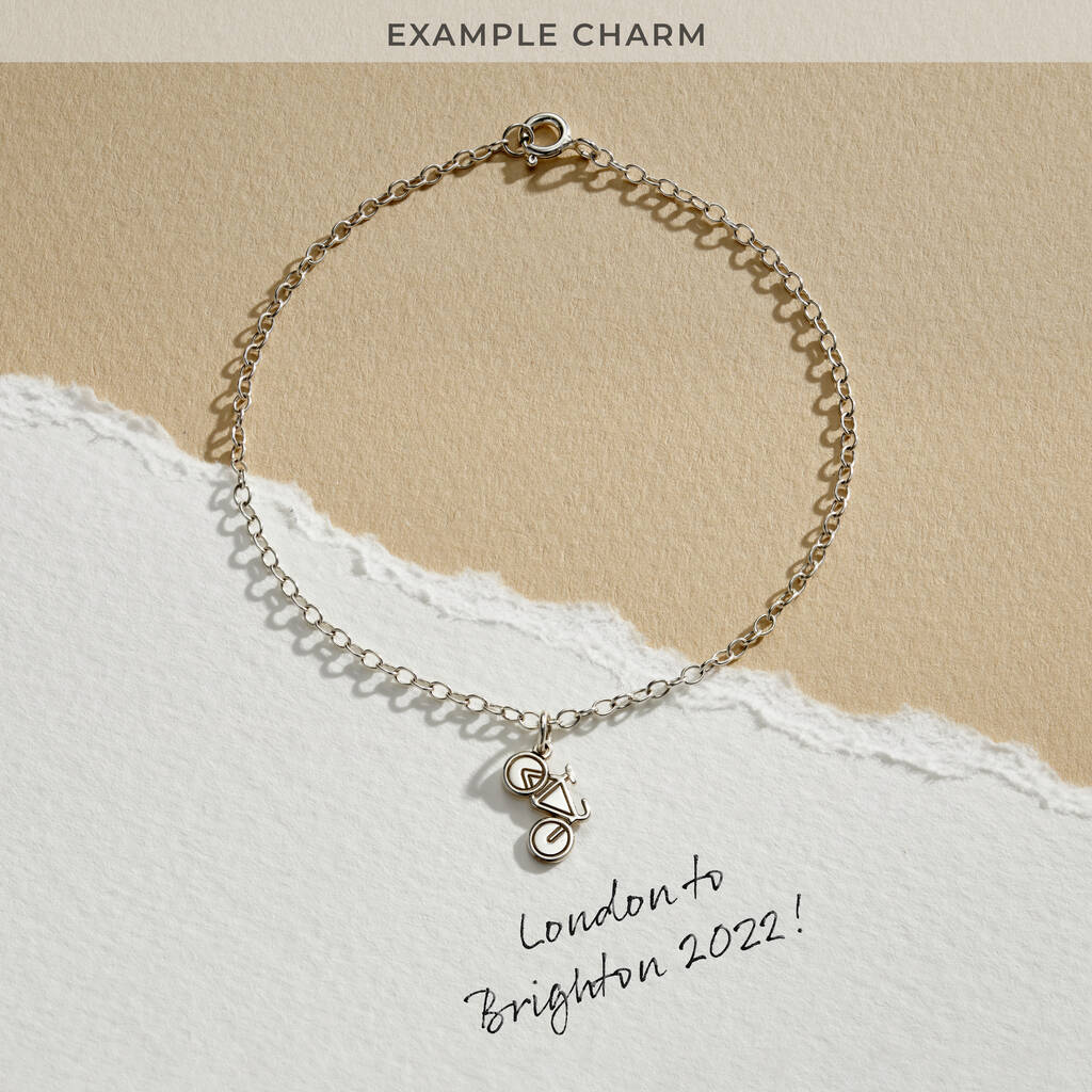 Our Personalised Dinky Story Charms are the ultimate in personalisation: handmade just for you, from a single word, memory, or idea. This gorgeous charm bracelet features your chosen bespoke charm suspended from one of our stunning trace chains. Simply outline how you want your charm to look and our jewellers will turn your idea in a design before engraving it in sterling silver. This bespoke charm bracelet is the perfect way to create something truly unique. We can create charms that, celebrate that meal by the sea with a Prawn Charm, or that new years swim with a swimmer charm.