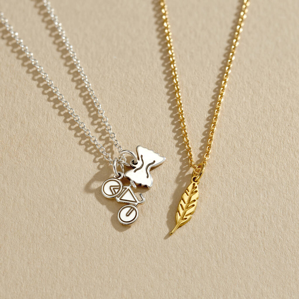 Our Personalised Dinky Story Charms are the ultimate in personalisation: handmade just for you, from a single word, memory, or idea. This gorgeous charm necklace features up to 3 of your bespoke charms suspended from one of our stunning trace chains. Simply outline how you want your charm to look and our jewellers will turn your idea in a design before engraving it in sterling silver. This bespoke charm necklace is the perfect way to create something truly unique. We can create charms that, celebrate a special holiday with a map charm, or that new years swim with a swimmer charm.