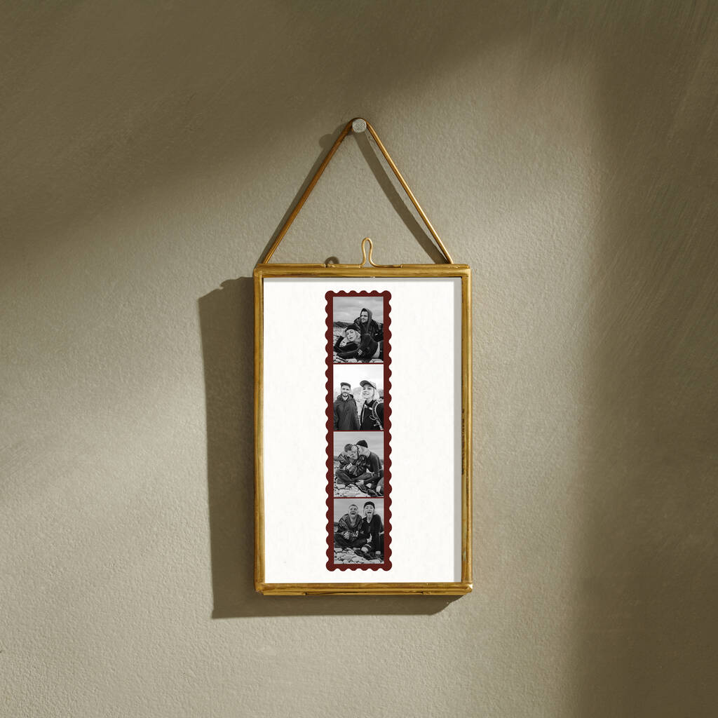 A great gift for your Valentine or Galentine. Showcase your favourite photos in this gorgeous maroon scalloped border housing your favourite four photos. They are arranged in a photobooth strip style.