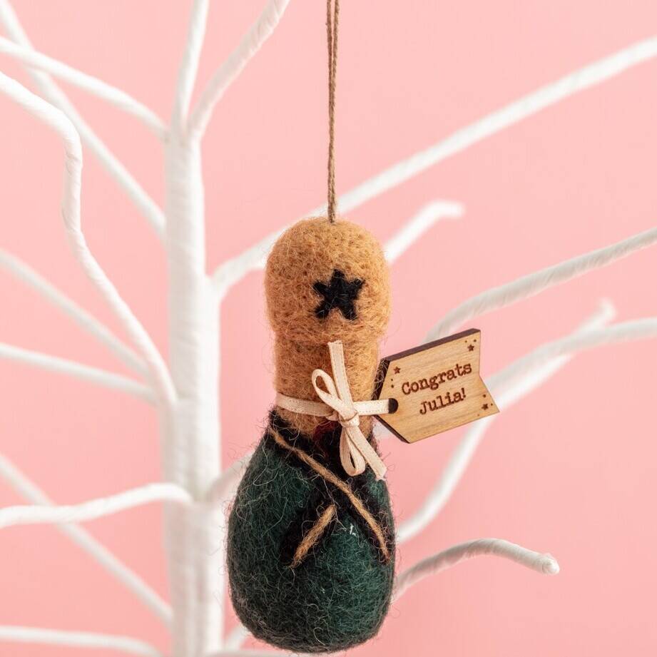 Whether you are wanting to help celebrate a personal achievement, mark a celebratory occasion this year on your Christmas Tree, an engagement or send some congratulations with cheer, this hanging bottle of bubbles bottle with personalised tag is the perfect gift and keepsake for prosecco lovers.