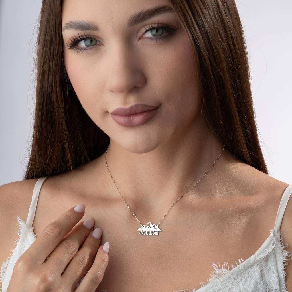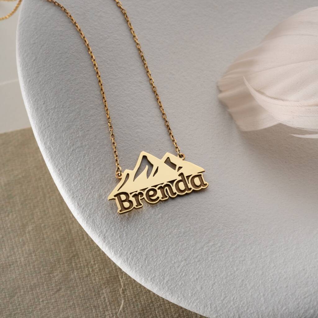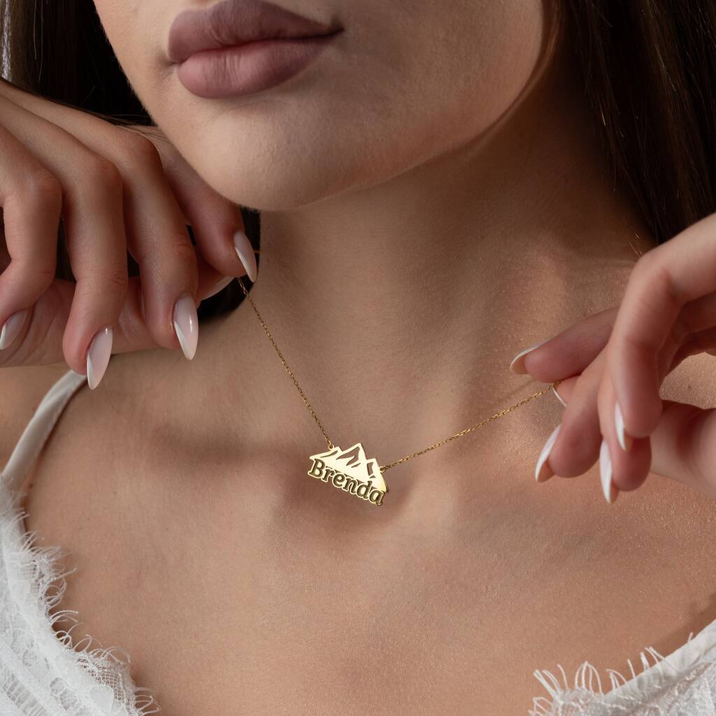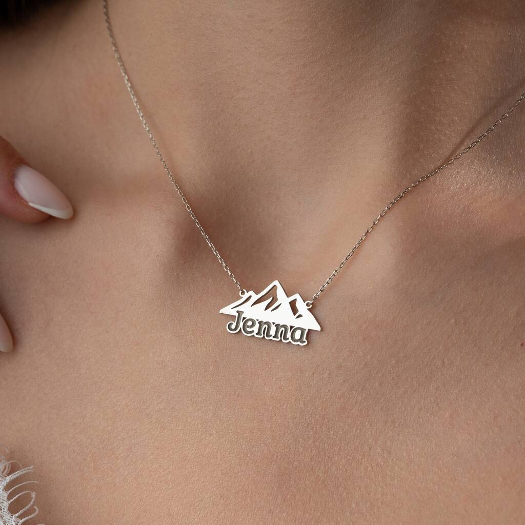 Personalised 'Adventure Awaits' Mountain Name Necklace