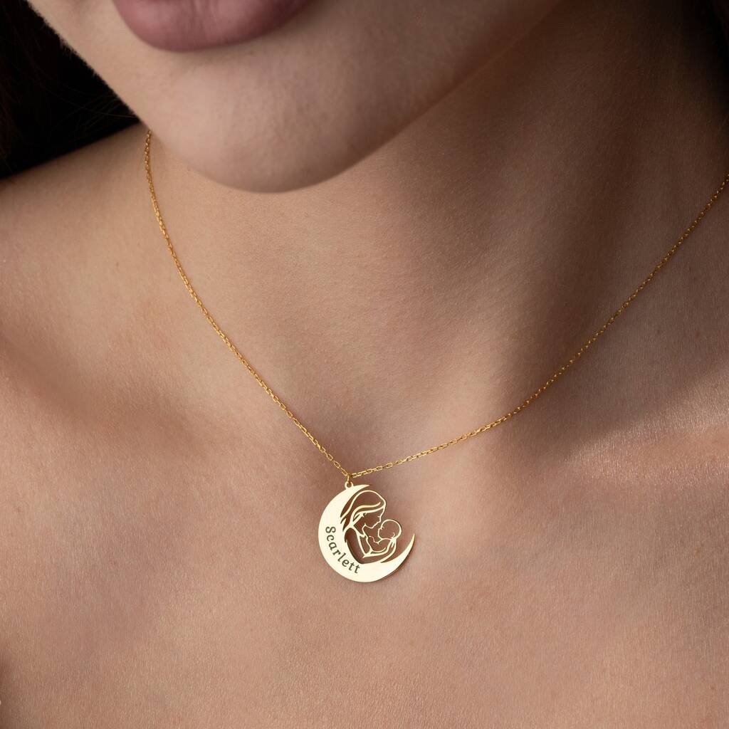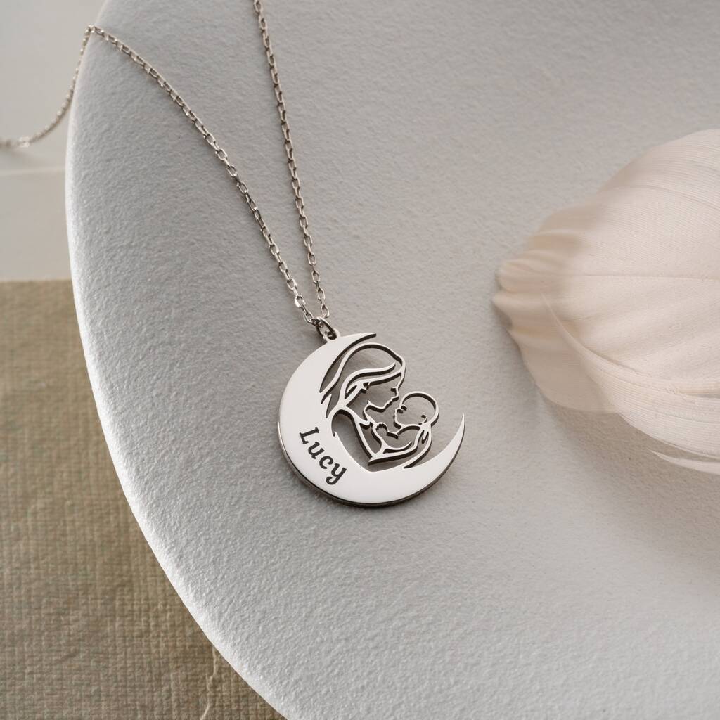 Personalised 'Mother's Love' Moon And Baby Necklace