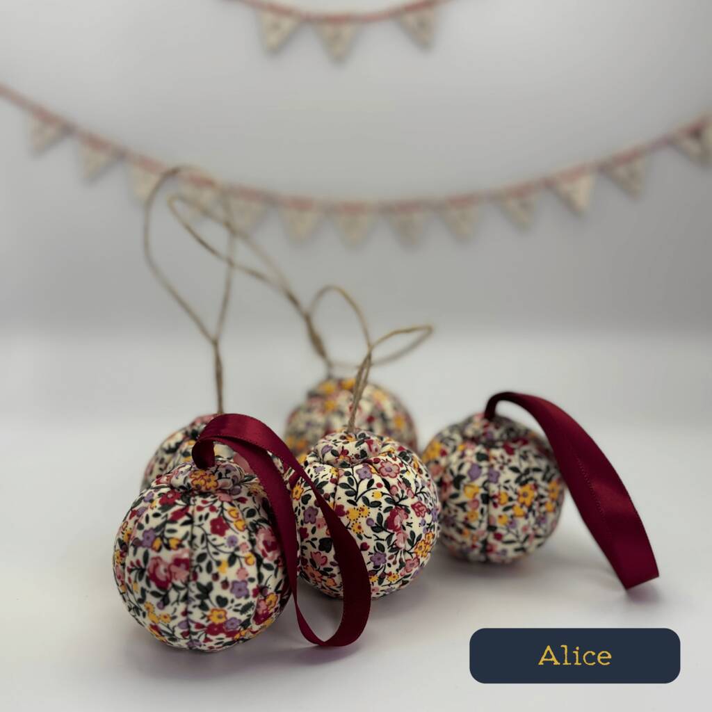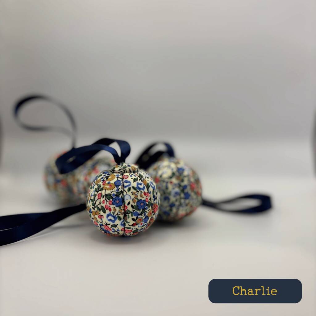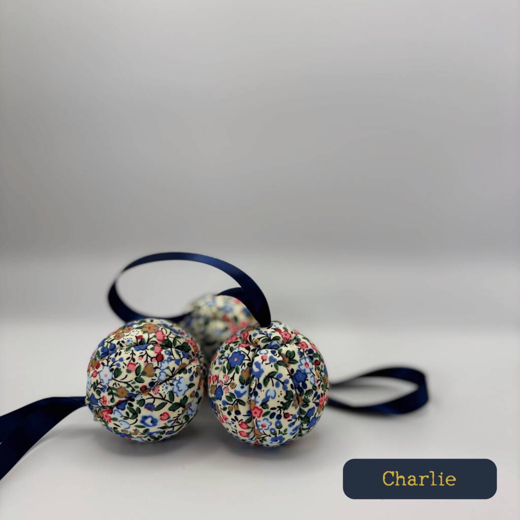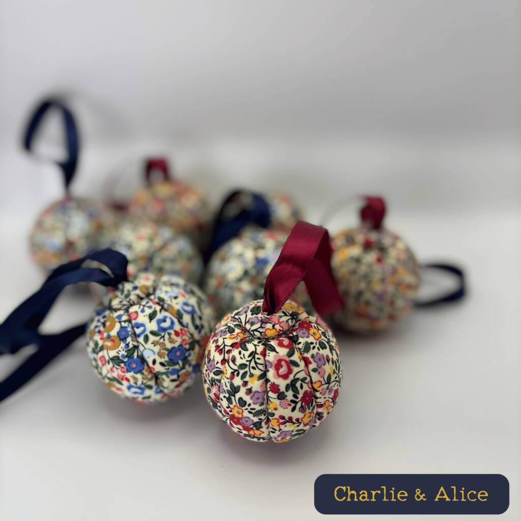 Handmade Fabric Christmas Baubles 6cm, Ribbon Loop