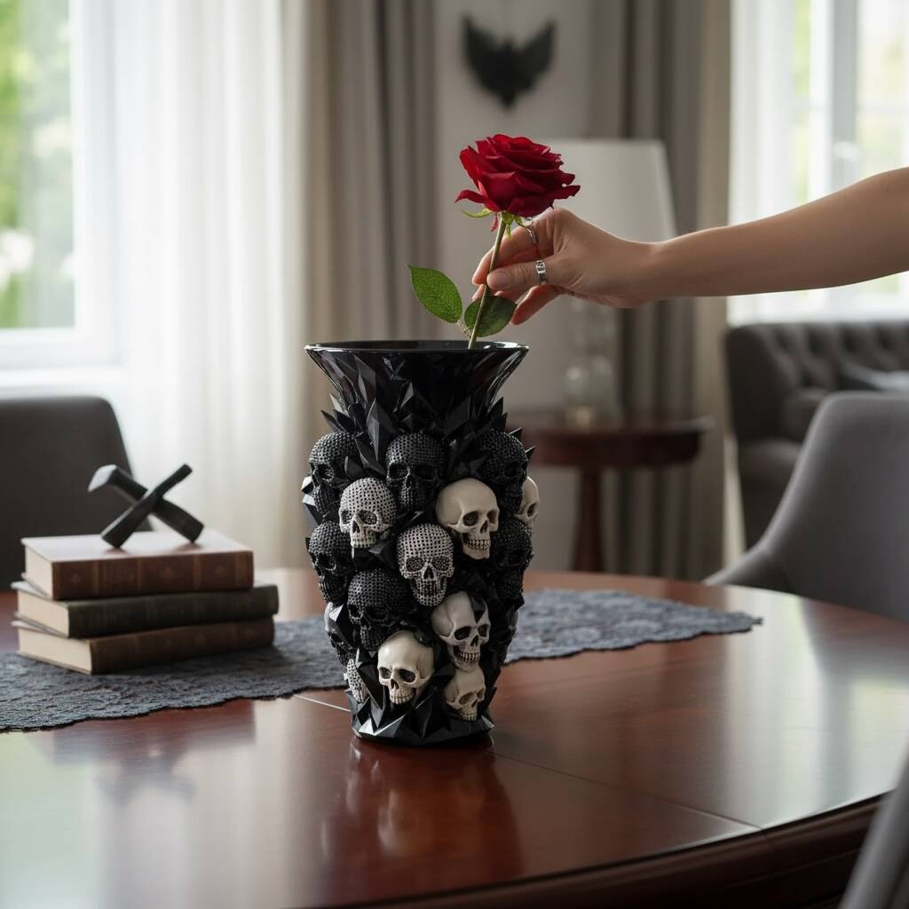 Black And Silver Skull Vase