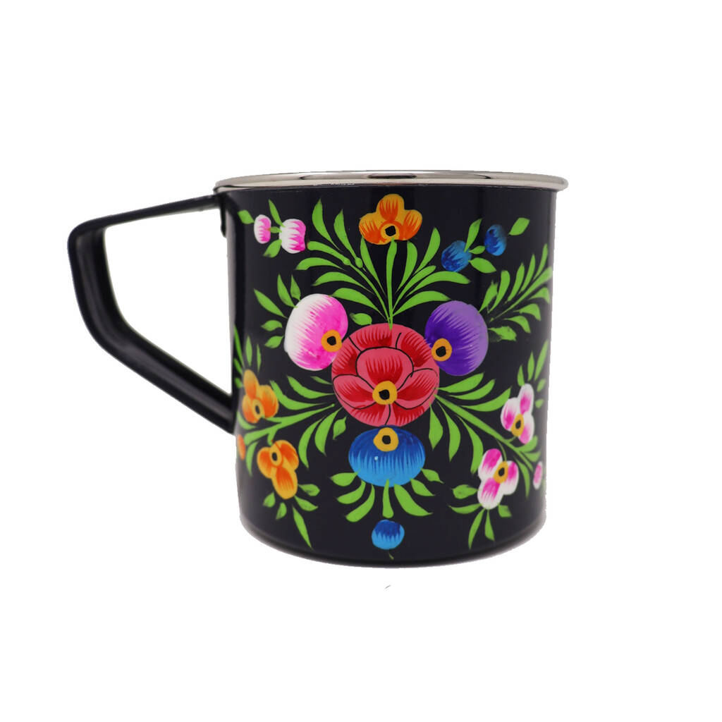 Set Of Four Hand Painted Mugs In A Folk Floral Design