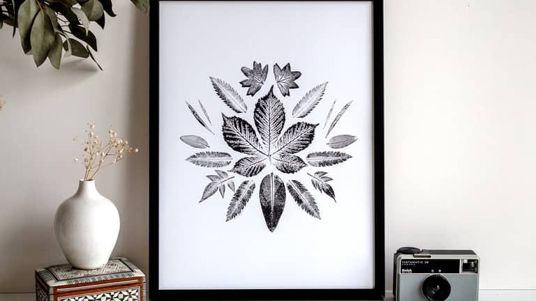 Detailed leaf monoprints are created from foraged leaves, pressed and printed with her vintage press in her garden studio at home in Mid Devon.