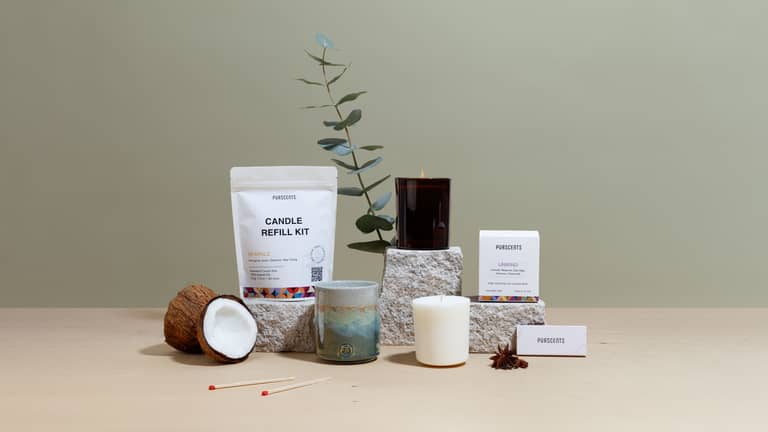 The idea for Purscents was born from a personal journey. Maame’s husband often got headaches from the synthetic fragrances in the candles she loved, and a cupboard full of empty jars felt wasteful.