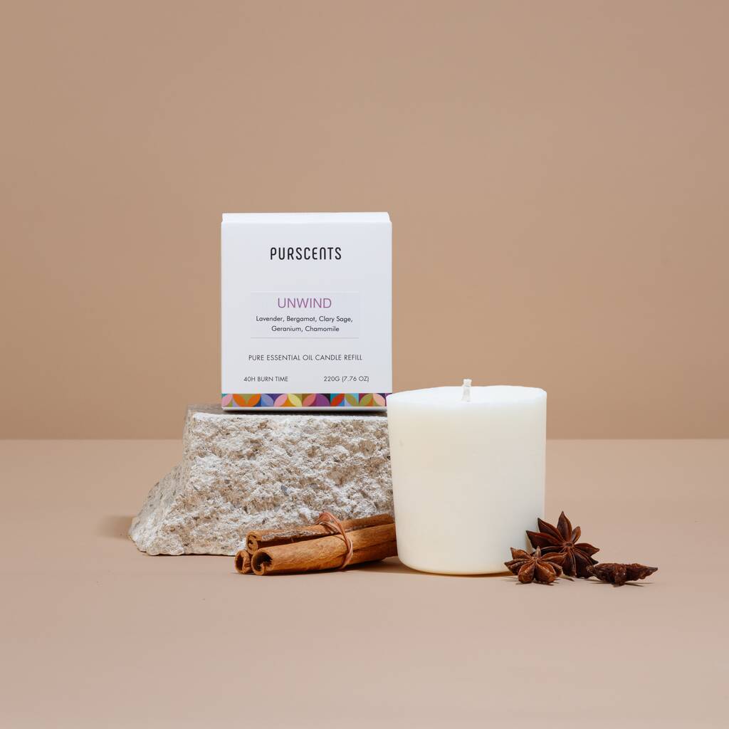 Never throw away another candle jar with our easy to use candle refill. No melting, and infused with mood lifting, soothing and relaxing essential oils.